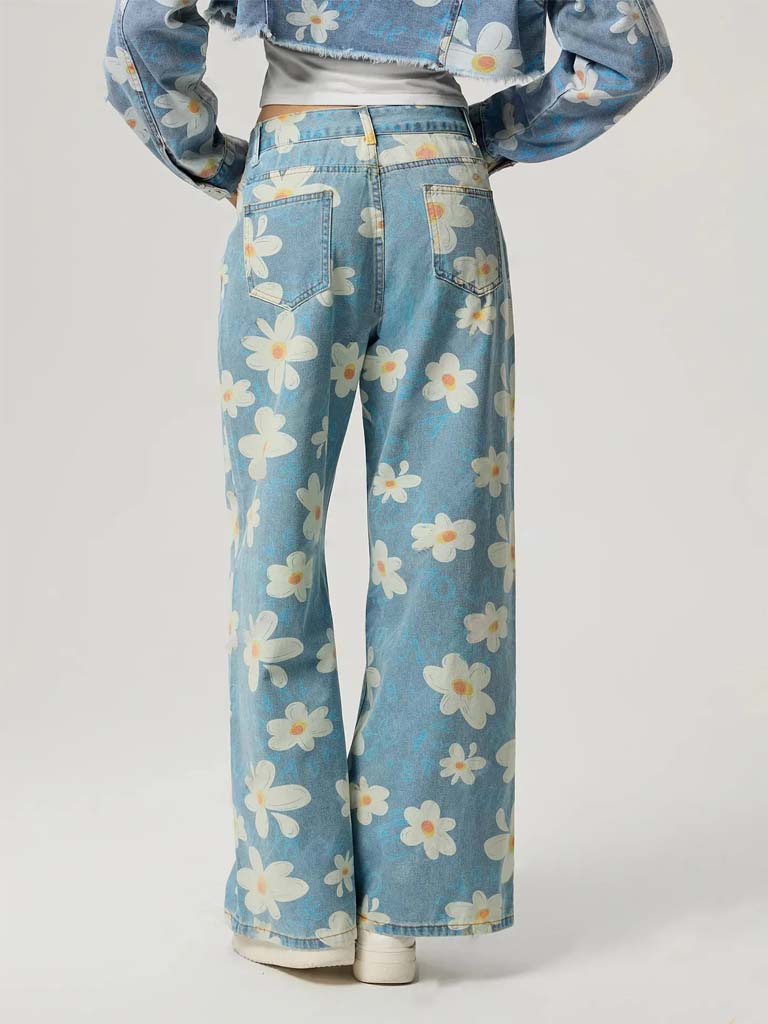 Elevate your wardrobe with these Vintage Daisy Print Denim Jeans, featuring a charming daisy pattern on high-quality cotton fabric. With a flattering mid-waist design and straight-leg fit, these jeans are perfect for adding a playful yet stylish touch to your everyday look.